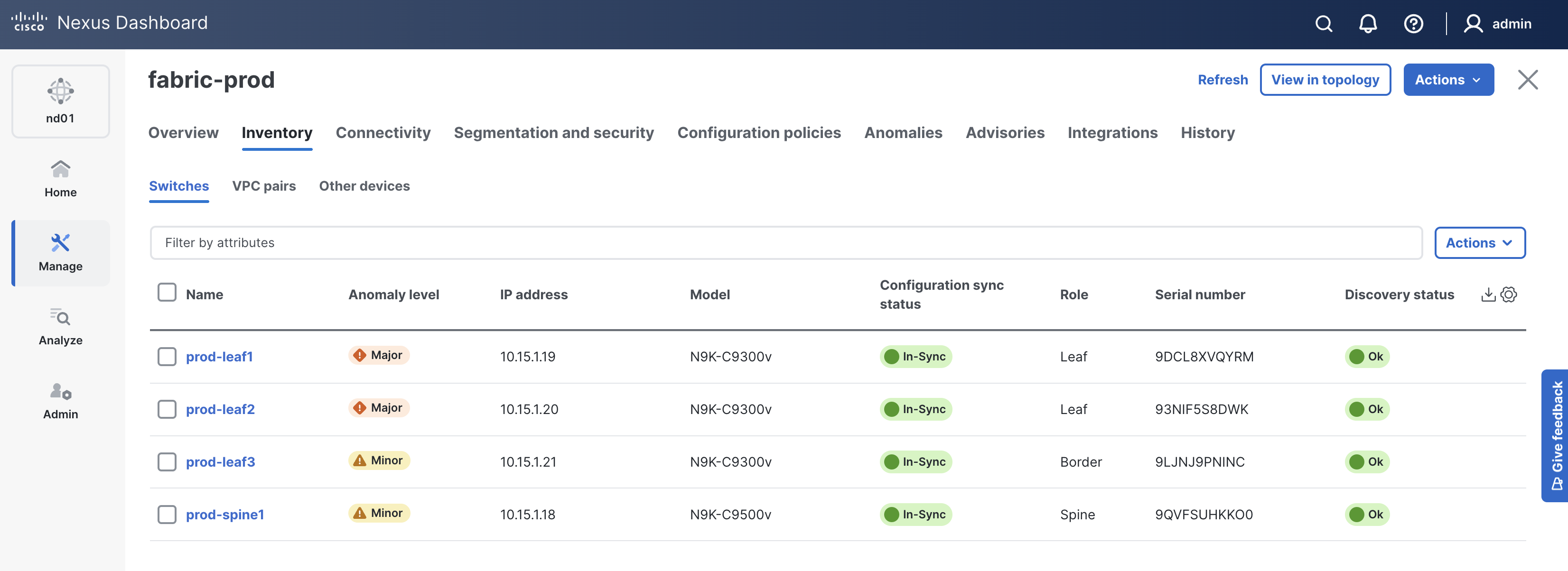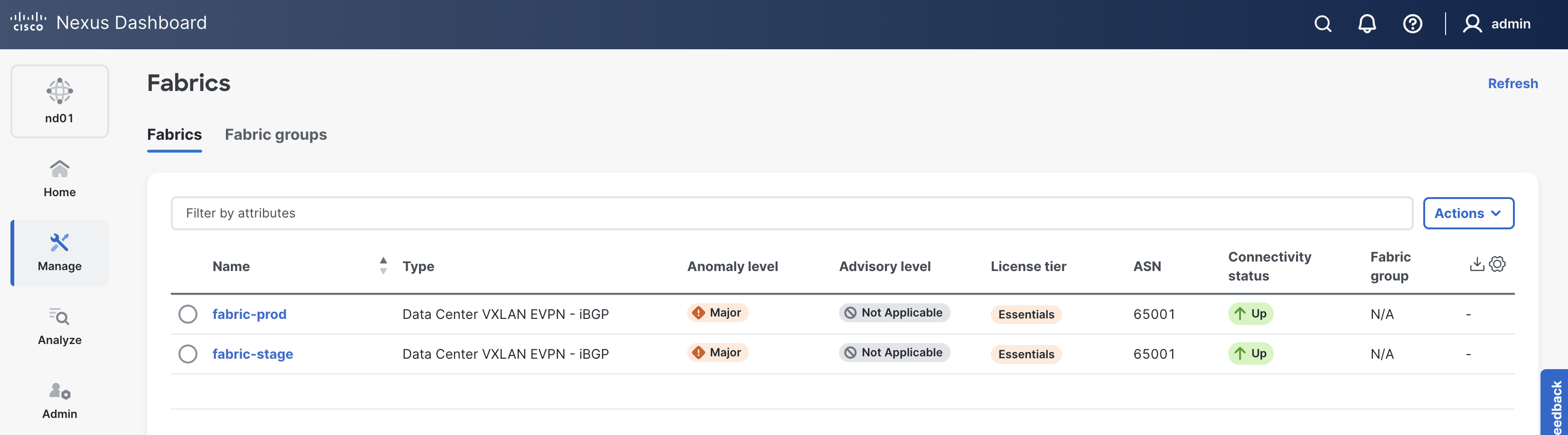 Production FabricIn your browser, return to ND and navigate to your prod-fabric: