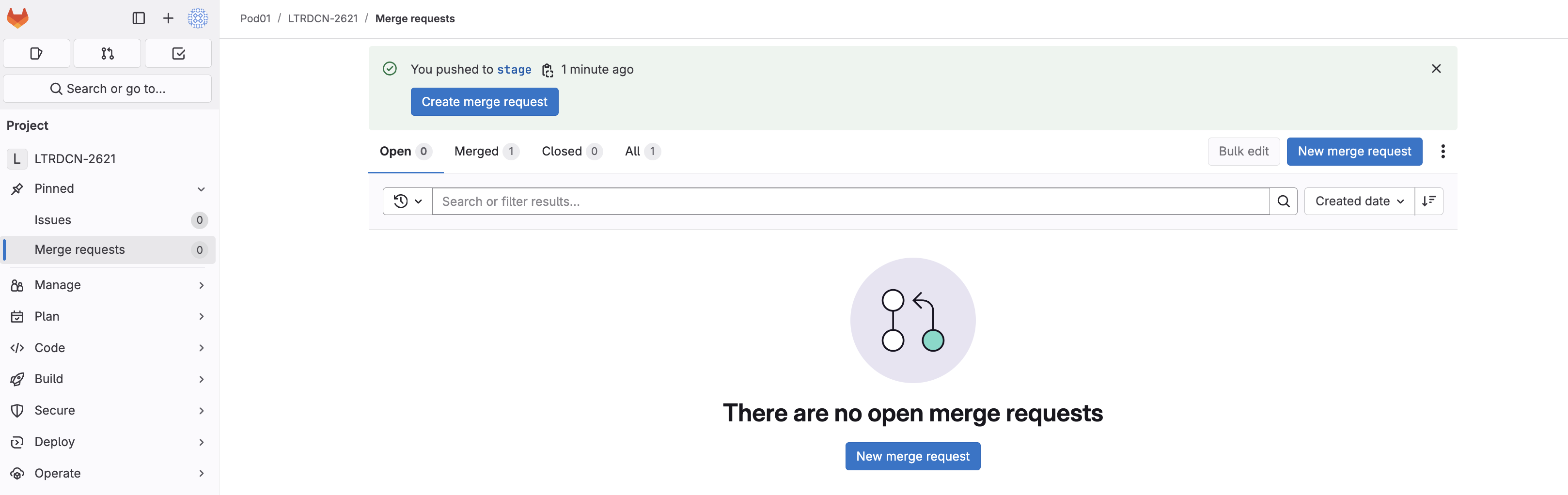 When your pipeline is done, open the merge request page: