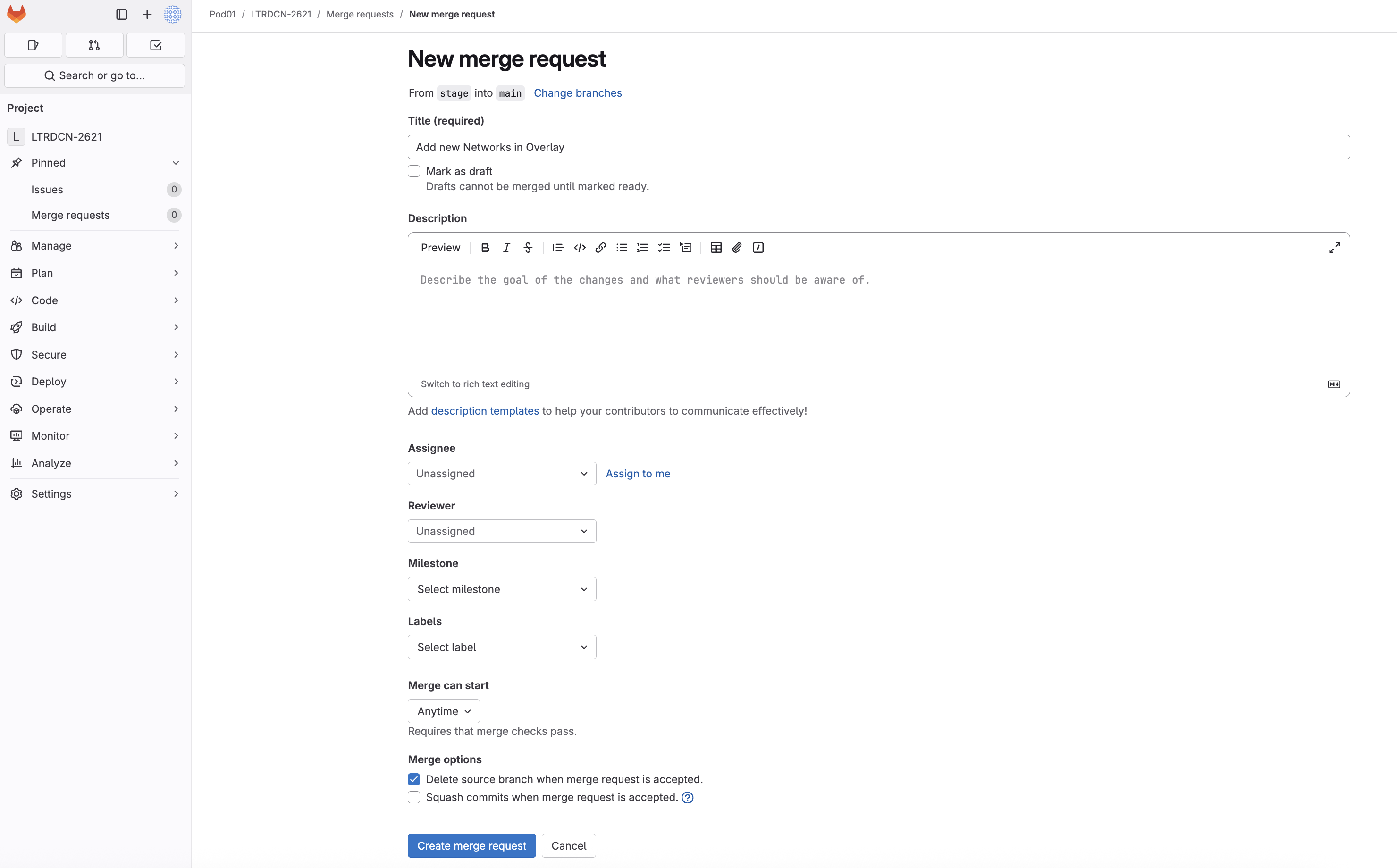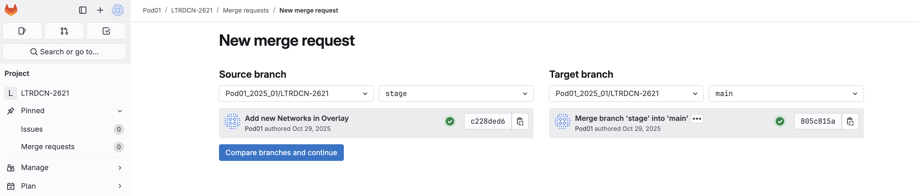 Now you need to create a merge request to verify/test the new Networks configuration against the ND staging environment fabric.