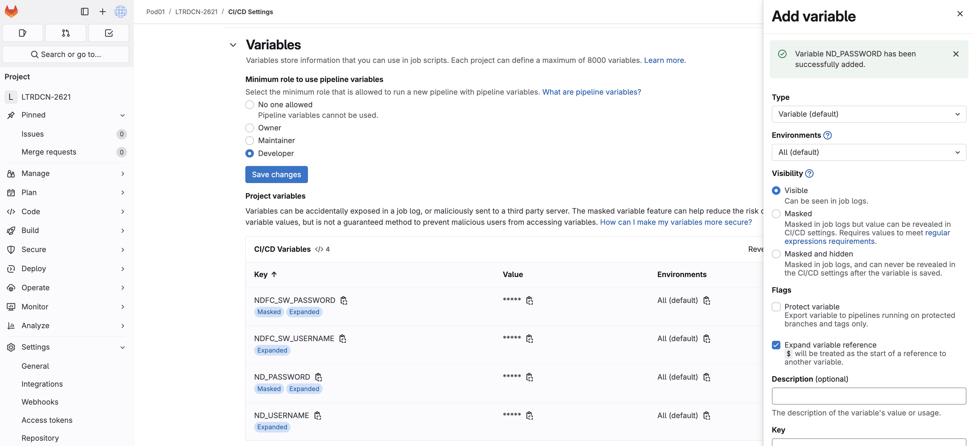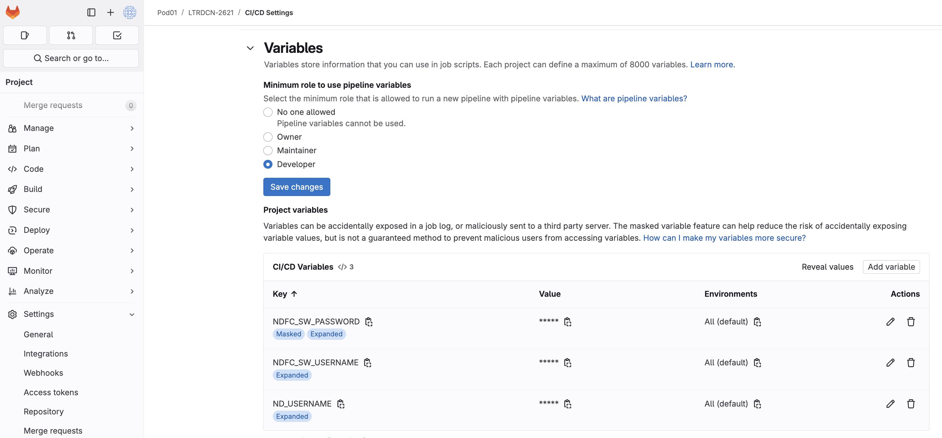 In Gitlab, you need to review and define the variables that will be used in the CI/CD pipeline as environment variables.