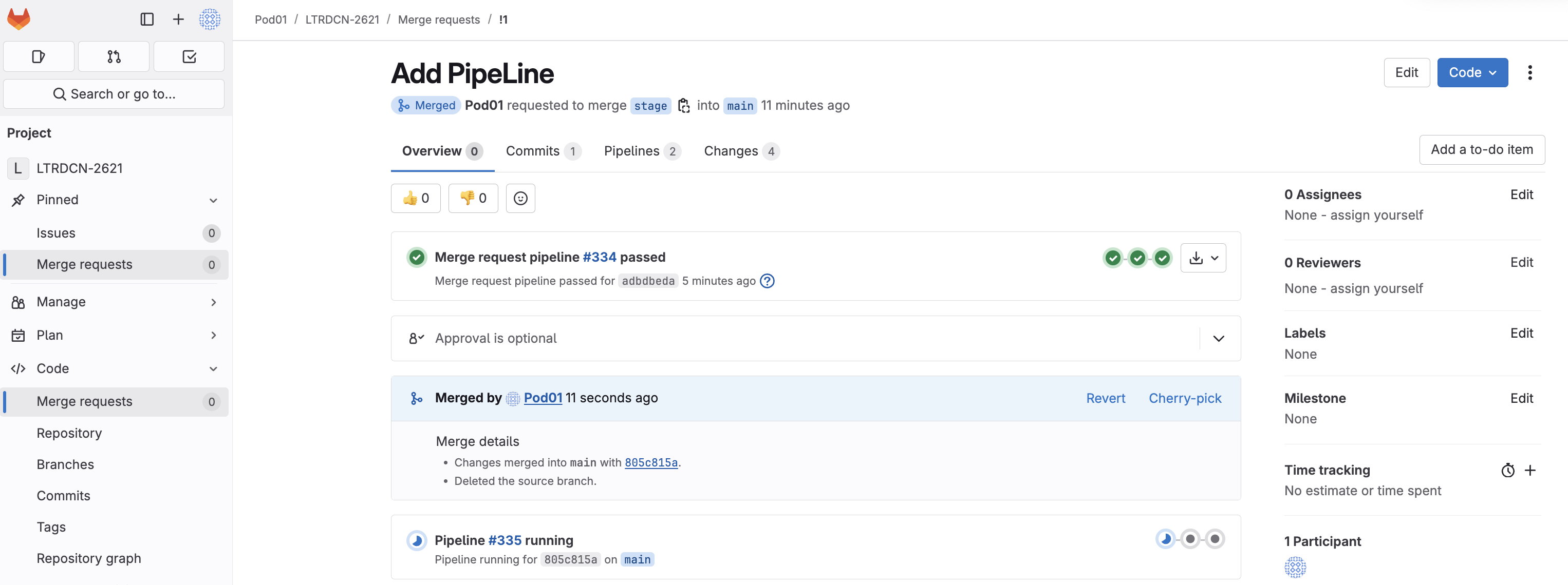 On Merge Request details page: