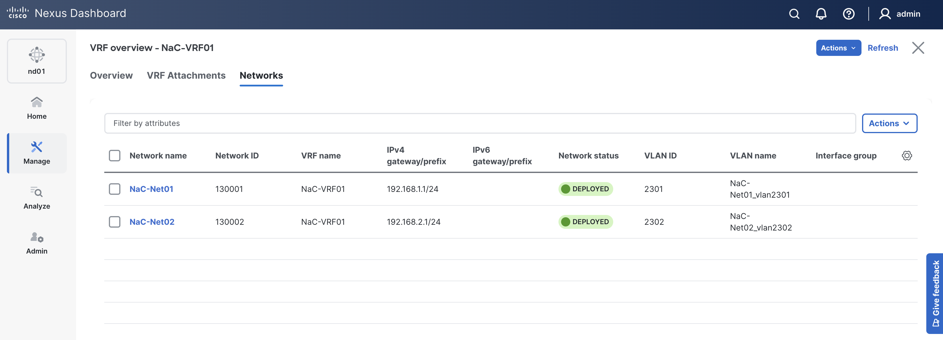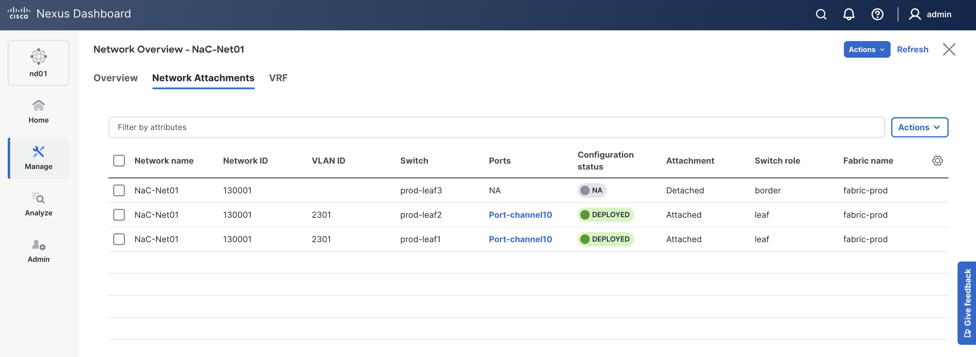 Click on Network Attachments to view the Networks attached to your prod leaf switches.