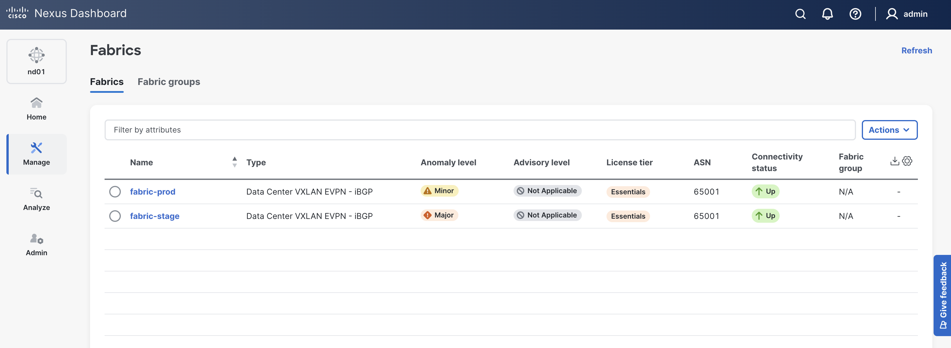 Step 5 - Login to Nexus Dashboard and Verify the New Production Fabric