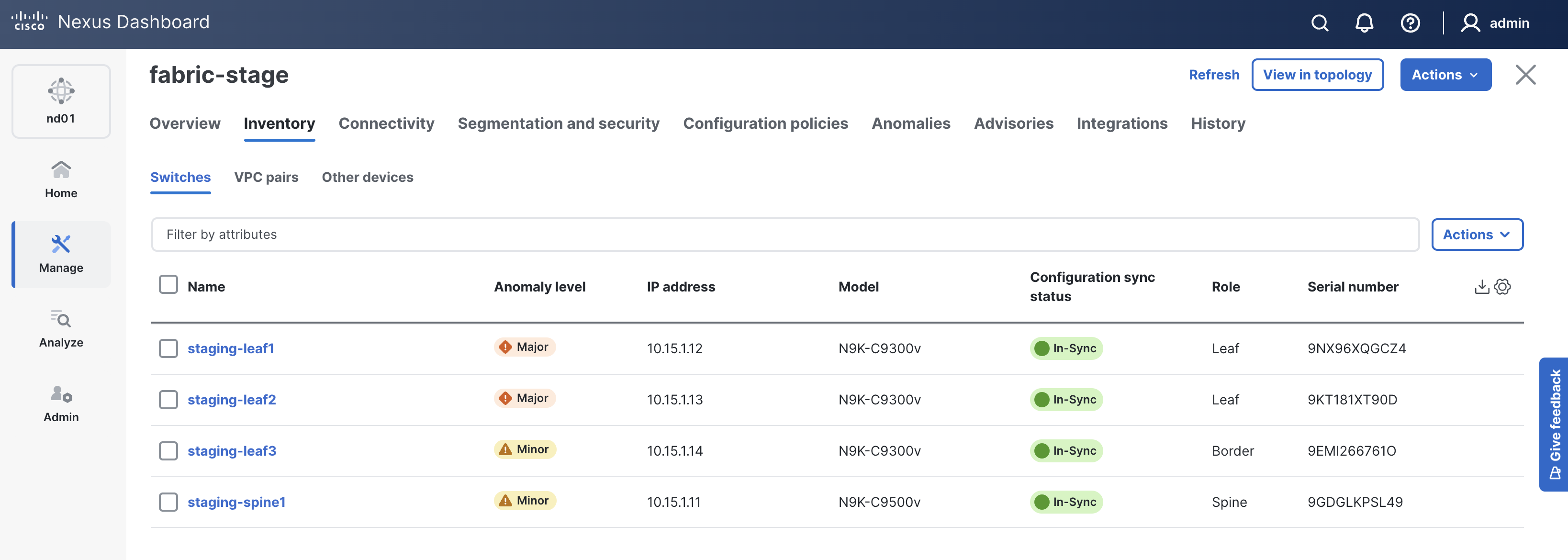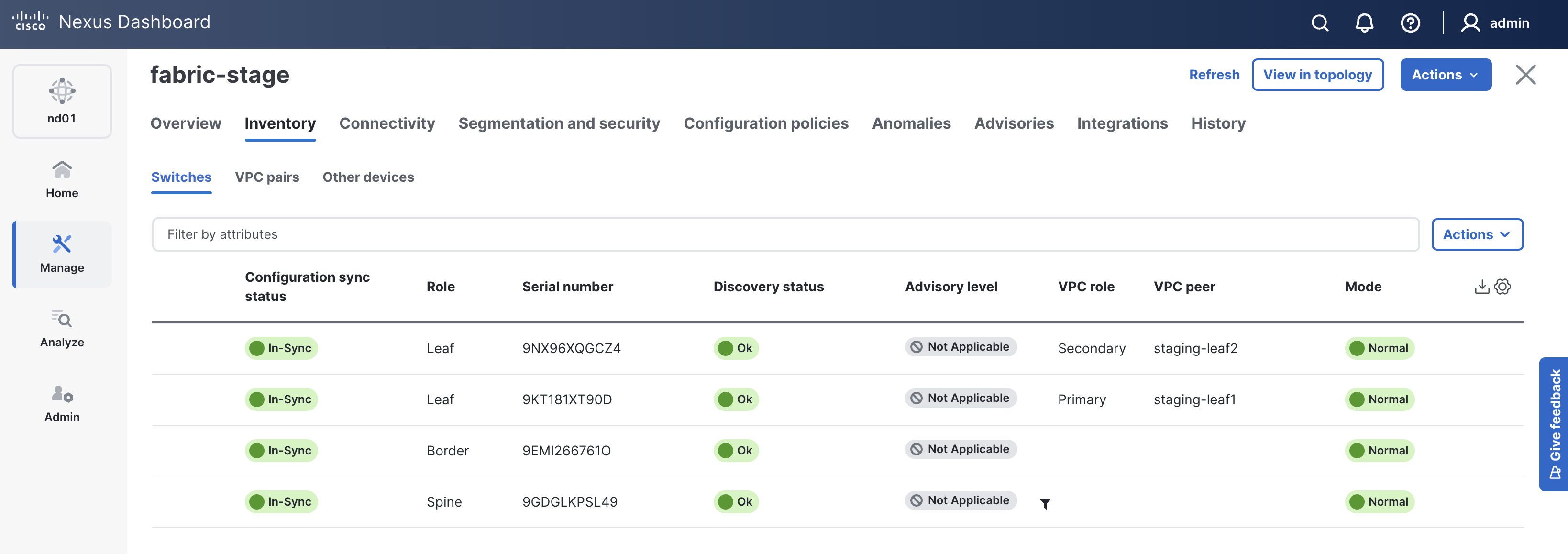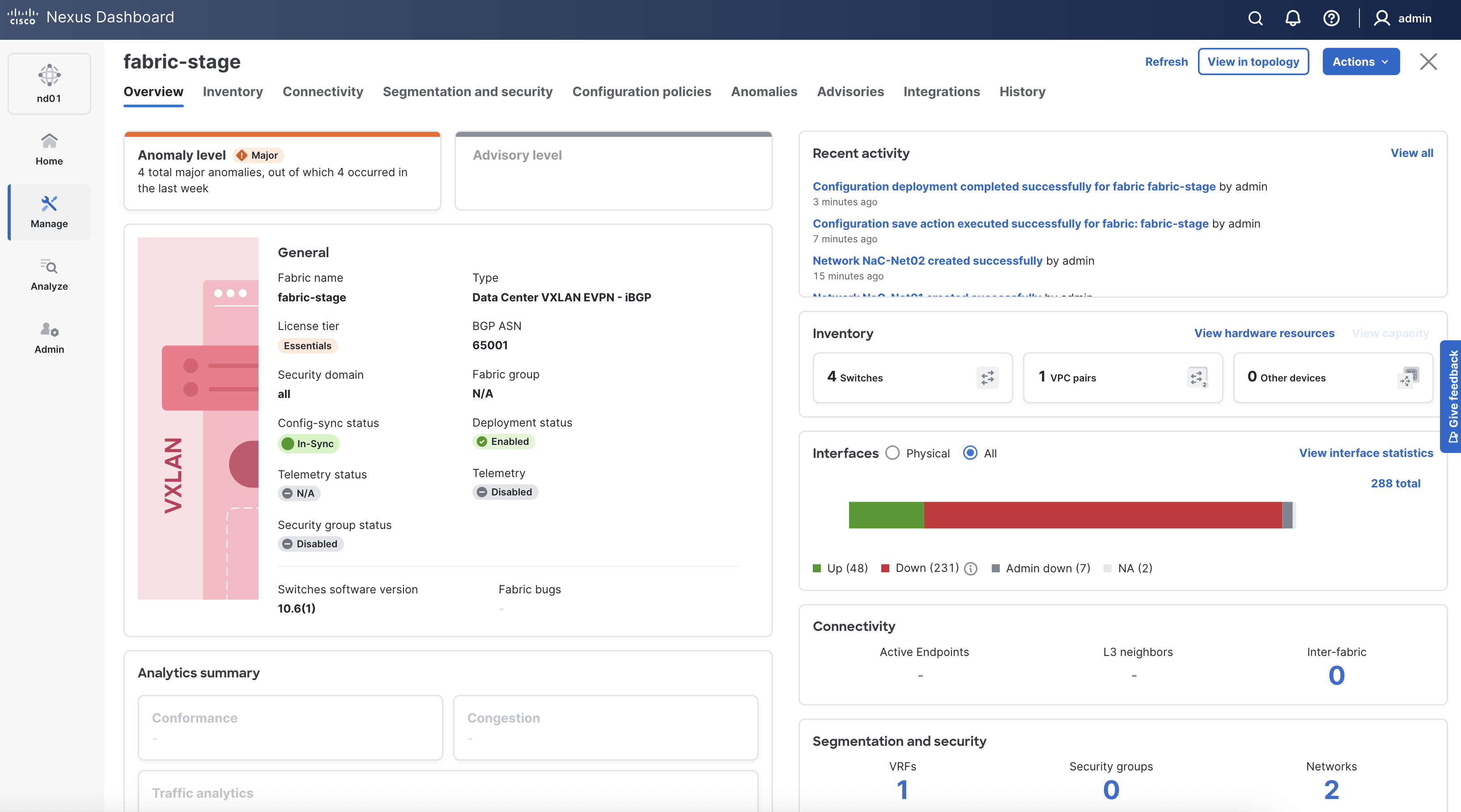Return to your ND browser window and verify the deployment of the fabric configuration.