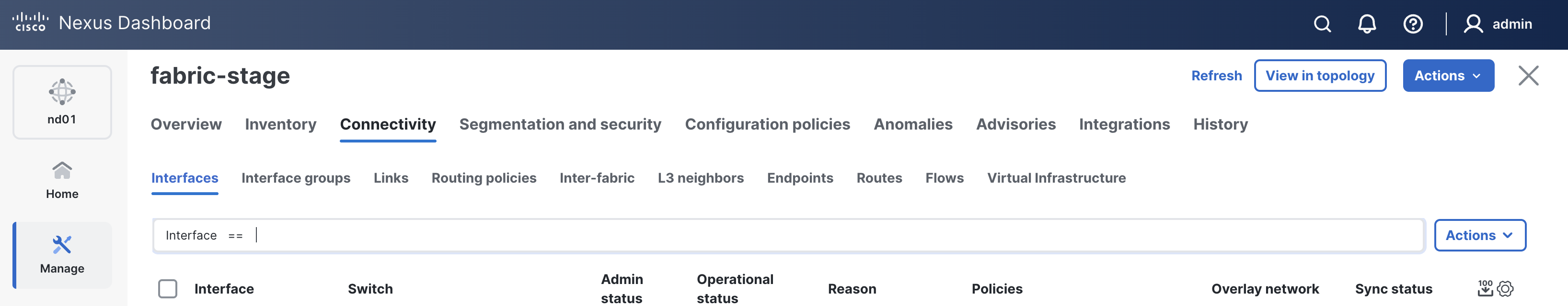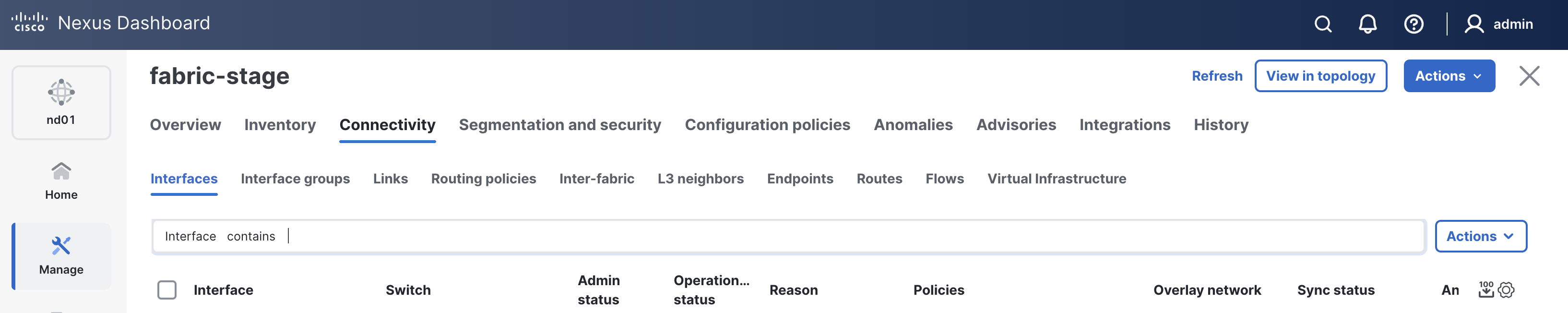 When reviewing the Interfaces tab, it is expected to see interfaces in various status since a deployment has not taken place yet.