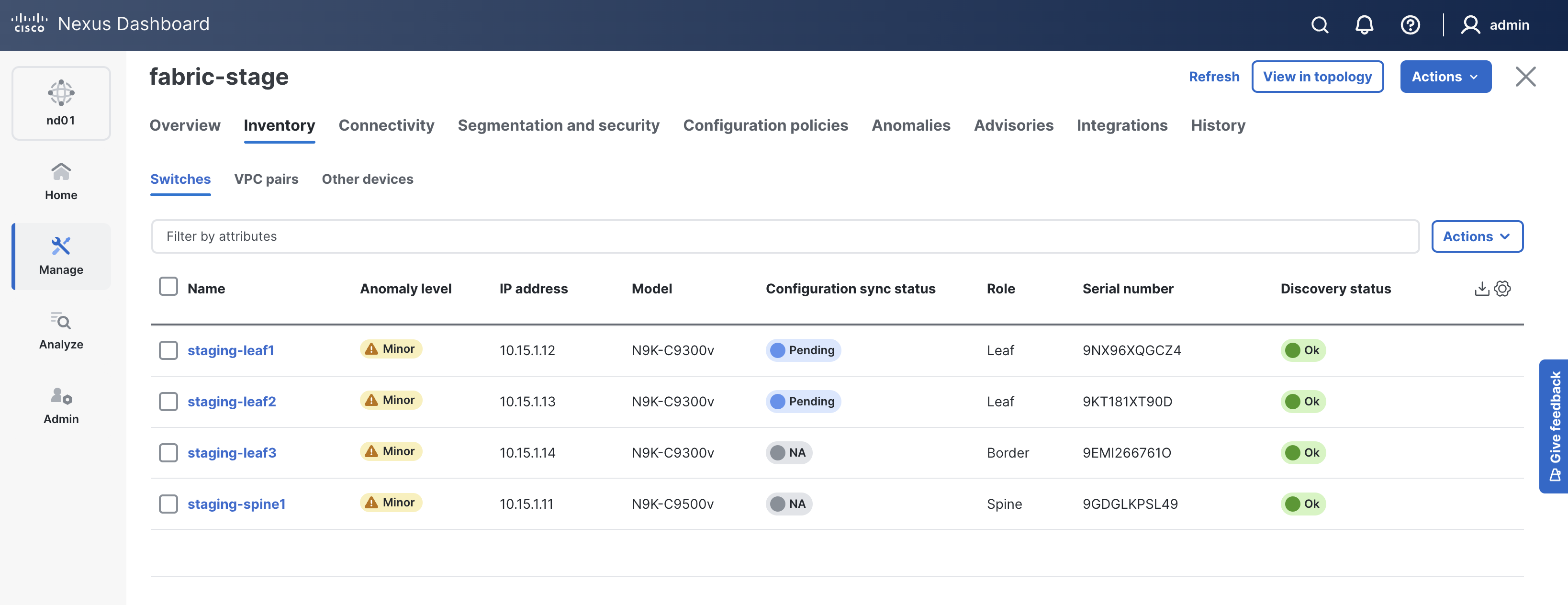 In NDFC, you should still be on the Switches tab, if not: